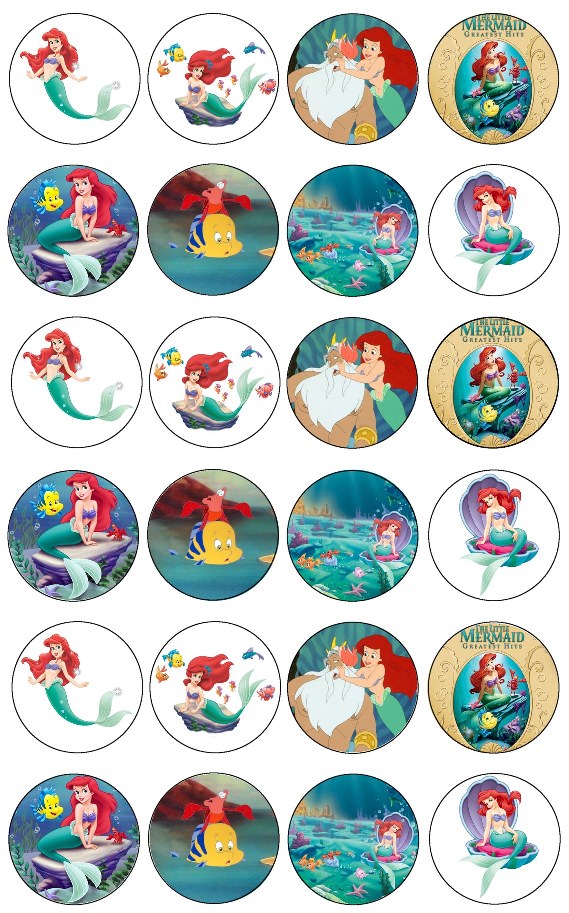 Celebrate your special occasion with these 24 Count The Little Mermaid themed Edible Cupcake Topper Images featuring Ariel, Flounder, Sebastian and King Triton!