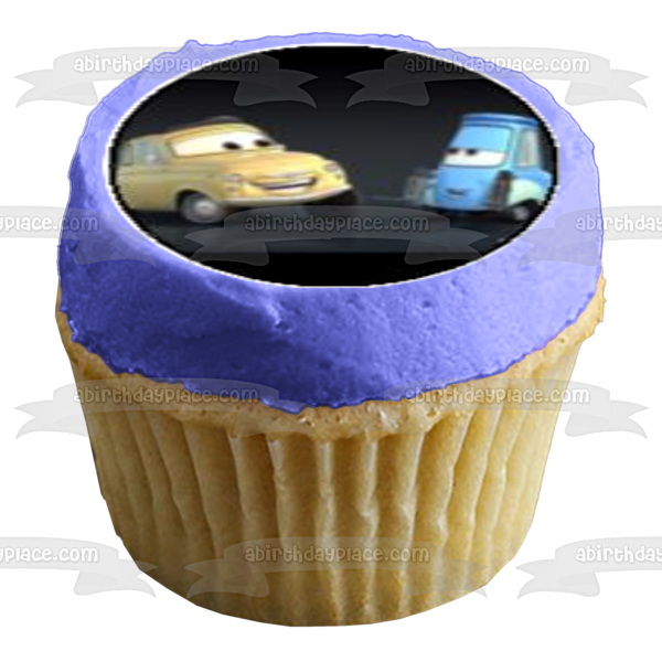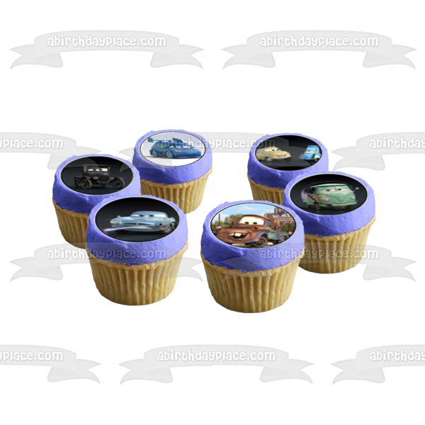Celebrate your special event with these 24 Count Cars 2 themed Edible Cupcake Topper Images featuring Lightening McQueen, Mater, Sally Carrera, Holly Shiftwell, Ramone, Mack and Guido!