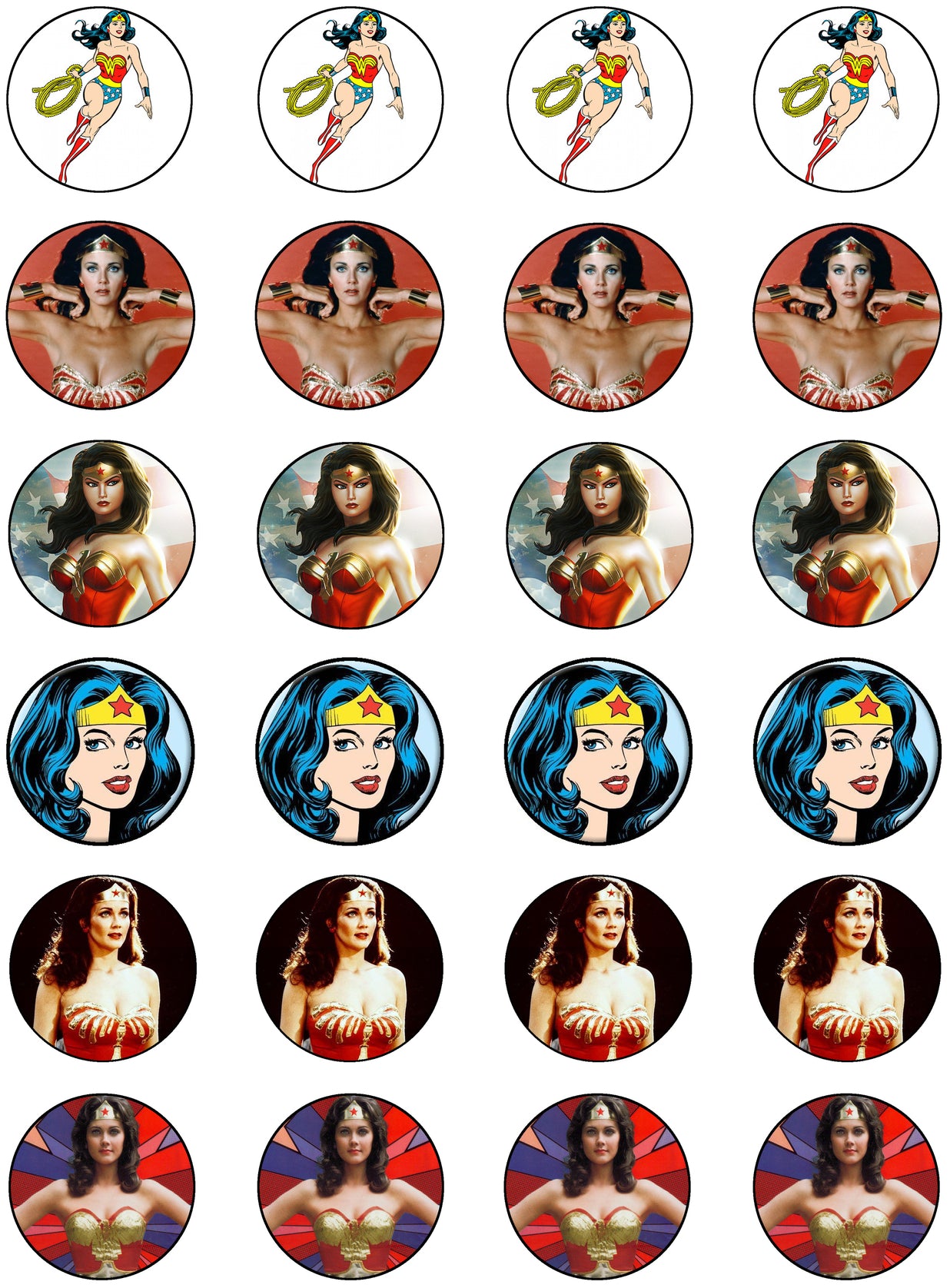 Celebrate your Superhero fanatic with these 24 Count Edible Cupcake Topper Images featuring Assorted Wonder Woman Lifelike and Cartoon Pictures!