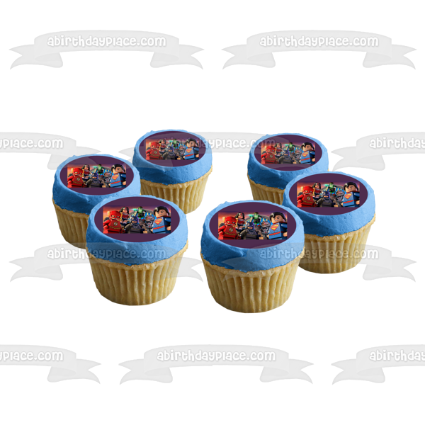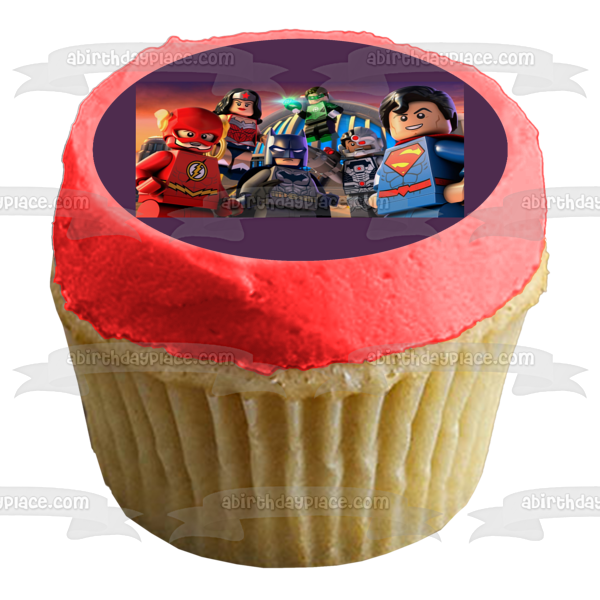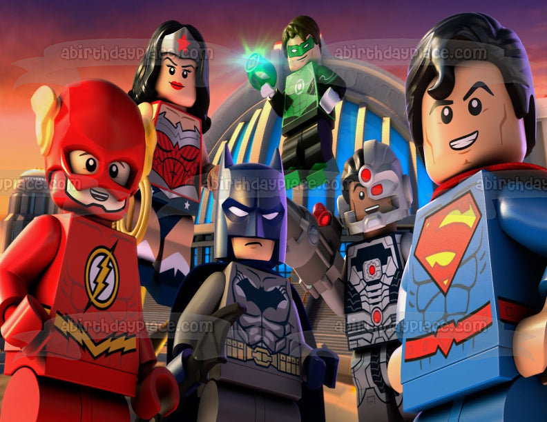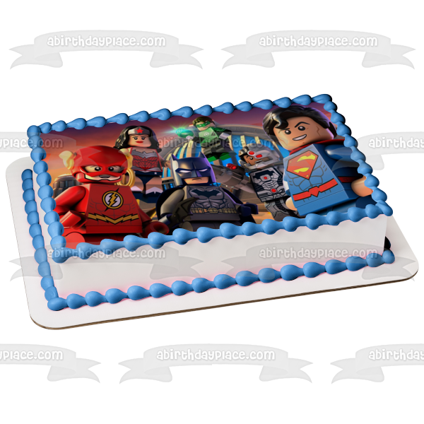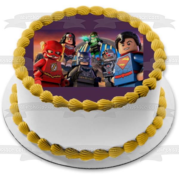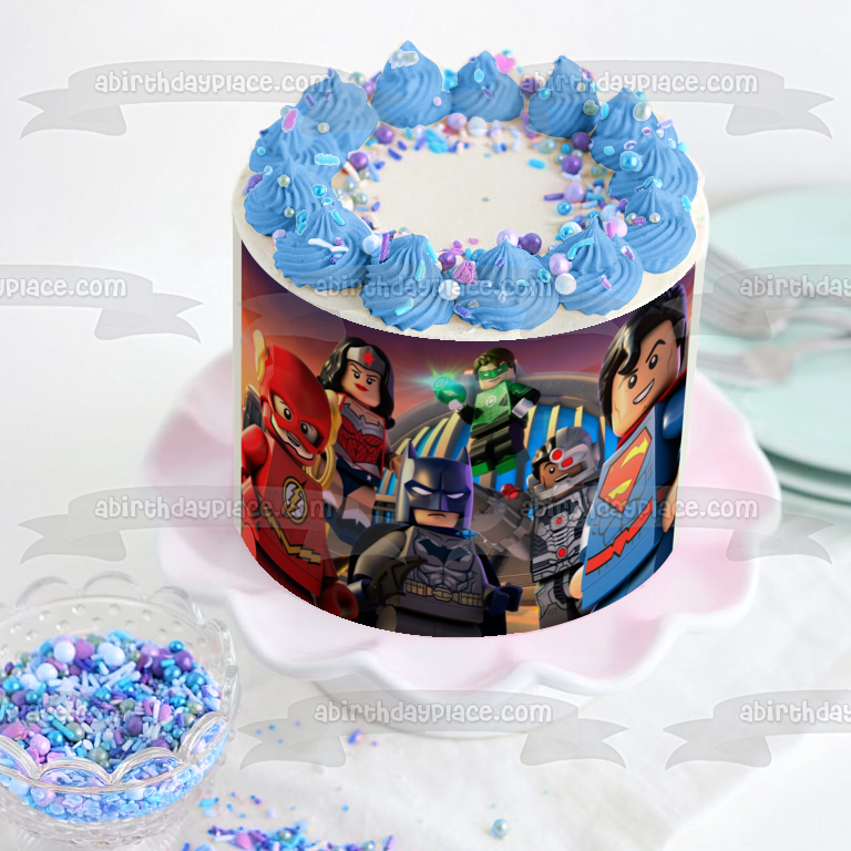 Decorate your Cake with this LEGO DC Comics themed Edible Cake Topper Image featuring LEGO Wonder Woman, The Flash, Superman and Green Lantern!