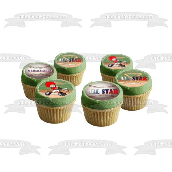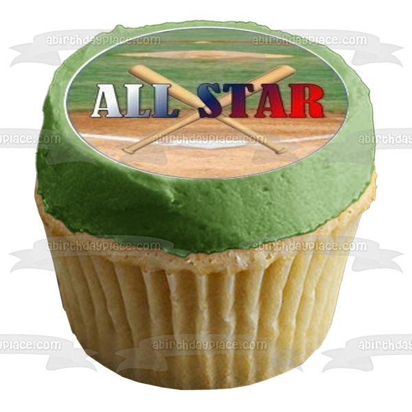 Baseball Cartoon All Star Bats Edible Cupcake Topper Images ABPID06844