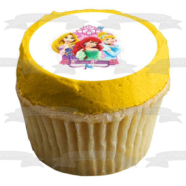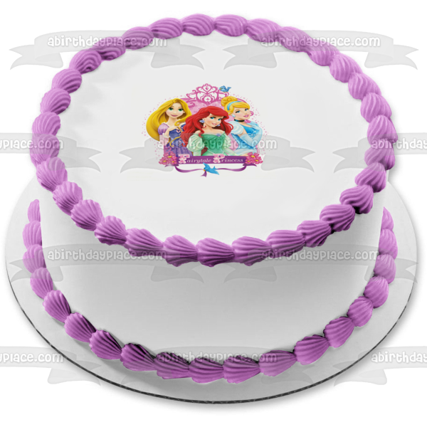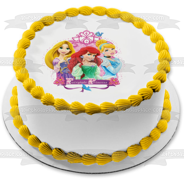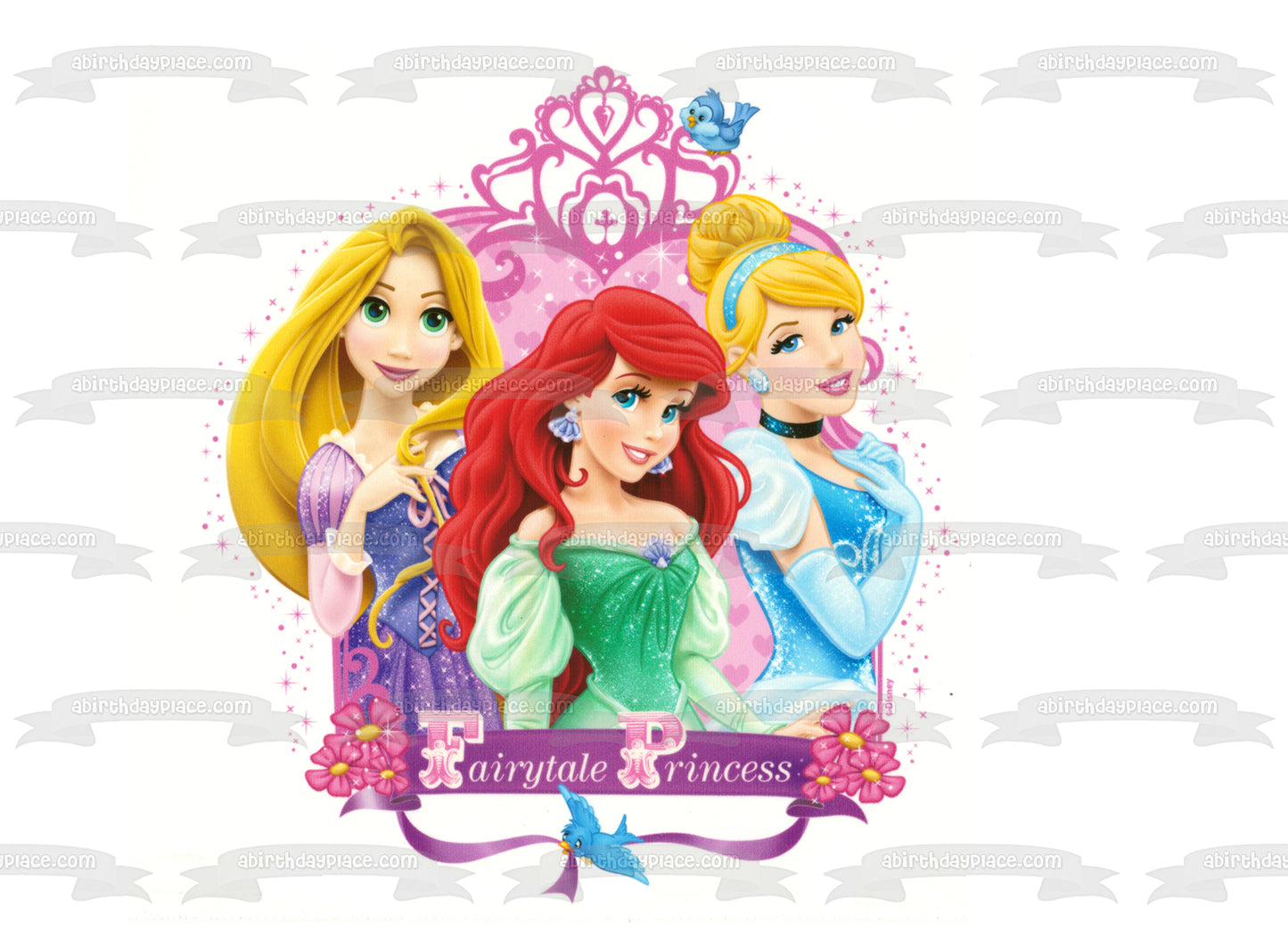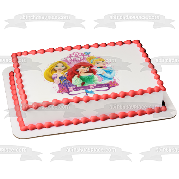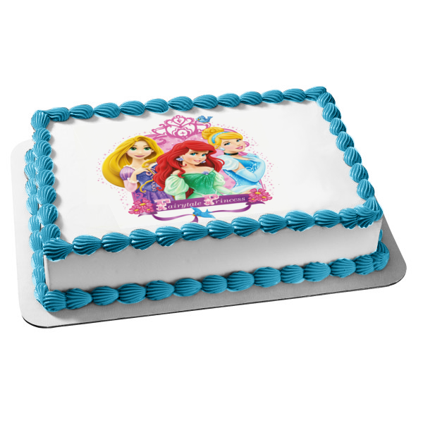 Decorate your Cake with this Princess Fairytale themed Edible Cake Topper Image featuring Aurora, Ariel and Cinderella!
