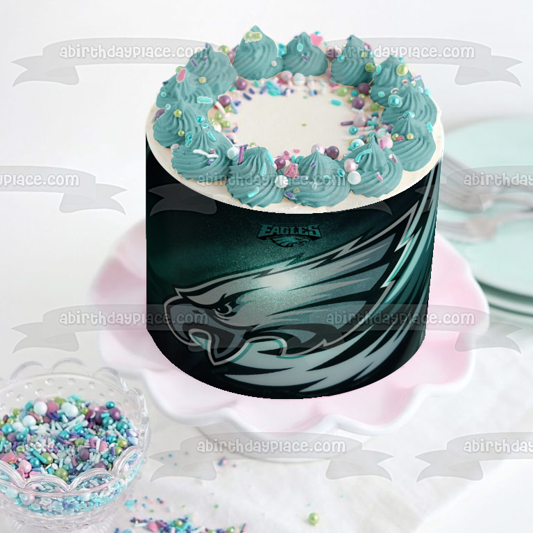 Celebrate your special event with this NFL themed Edible Cake Topper Image featuring the Philadelphia Eagles Logo with a Black Background!