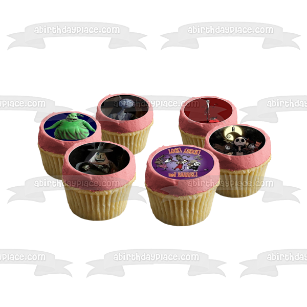 Decorate your Cupcakes with these 24 Count Nightmare Before Christmas themed Edible Cupcake Topper Images featuring Jack Skellingon, Oogie Boogie, Sally, The Grim Reaper, Lock, Shock and Barrel!