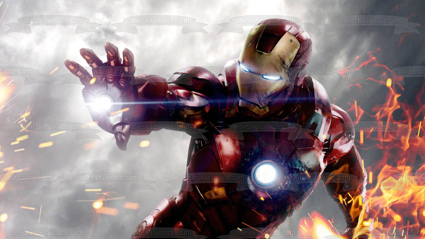 Iron Man Grey Background with Fire Edible Cake Topper Image ABPID07248