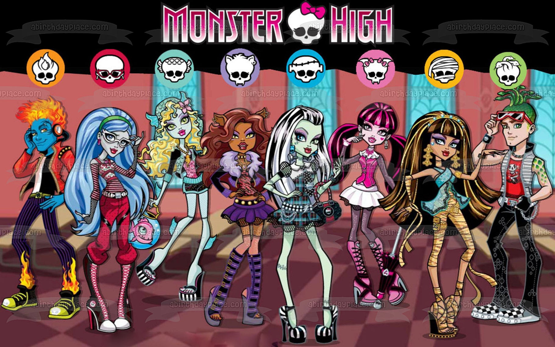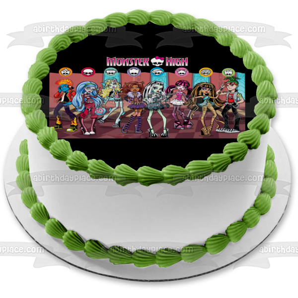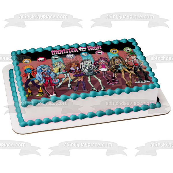 Celebrate your special day with this Monster High themed Edible Cake Topper Image featuring Clawdeen Wol,f Lagoona Blue, Cleo De Nile, Draculaura ,Frankie Stein, Ghoulia Yelps, Heath Burns and Deuce Gorgon!