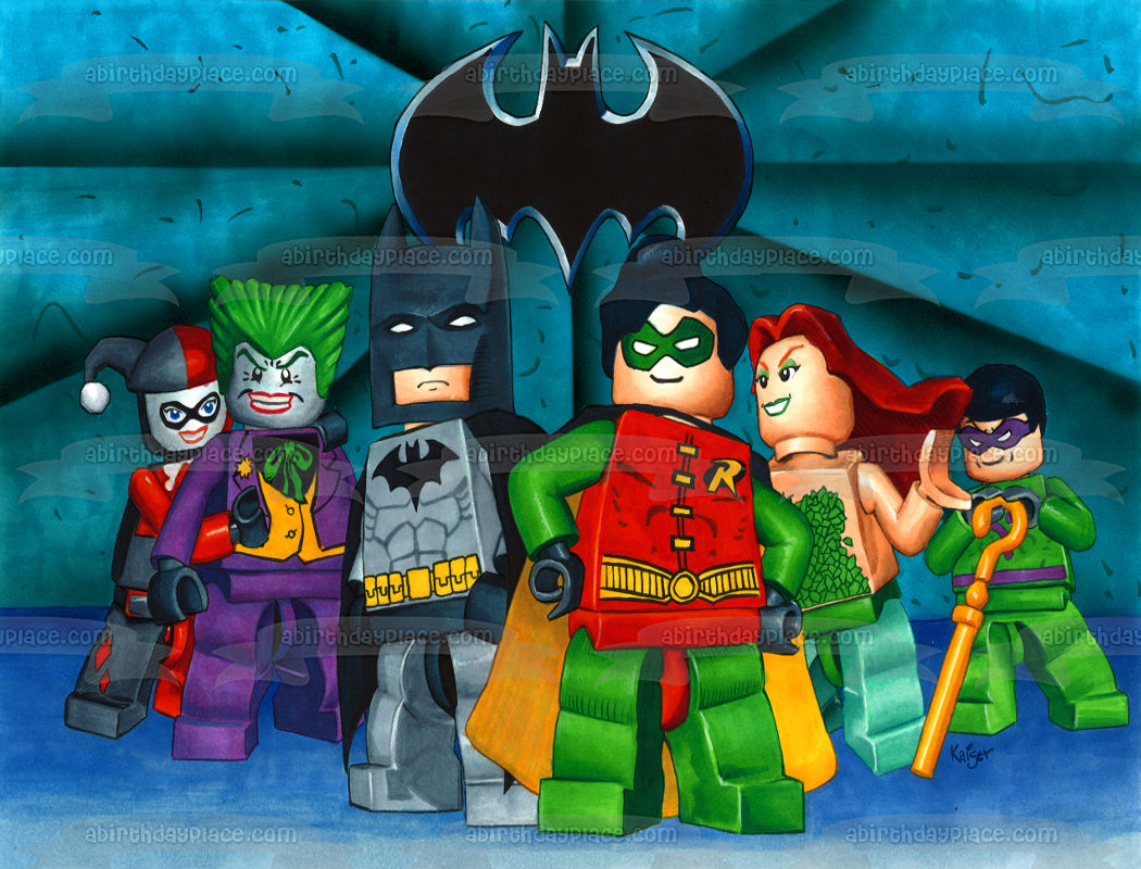 LEGO Batman Logo The Joker Robin Harley Quinn and Poison Ivy Edible Cake Topper Image ABPID07500