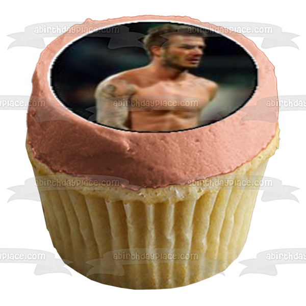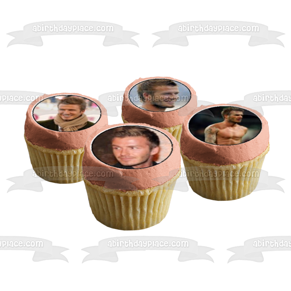 Decorate your Cupcakes with these 24 Count David Beckkam themed Edible Cupcake Topper Images featuring Assorted Pictures of Him!