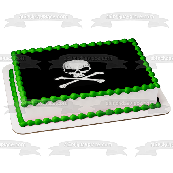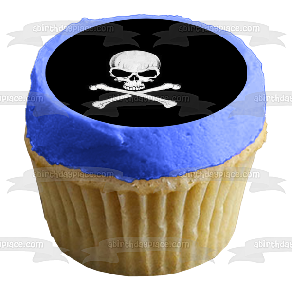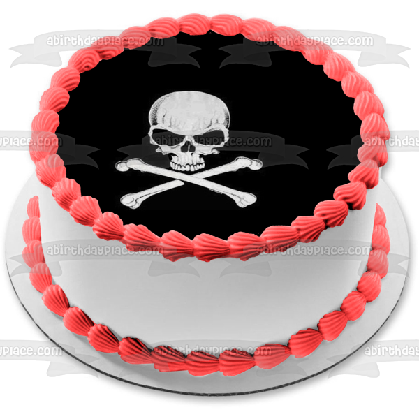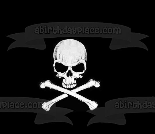 Celebrate your special day with this Skull and Cross Bones themed Edible Cake Topper Image featuring them in Black and White!