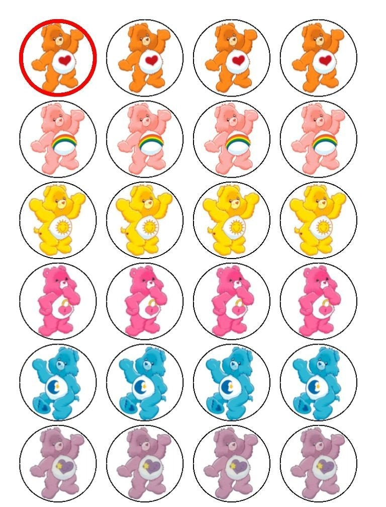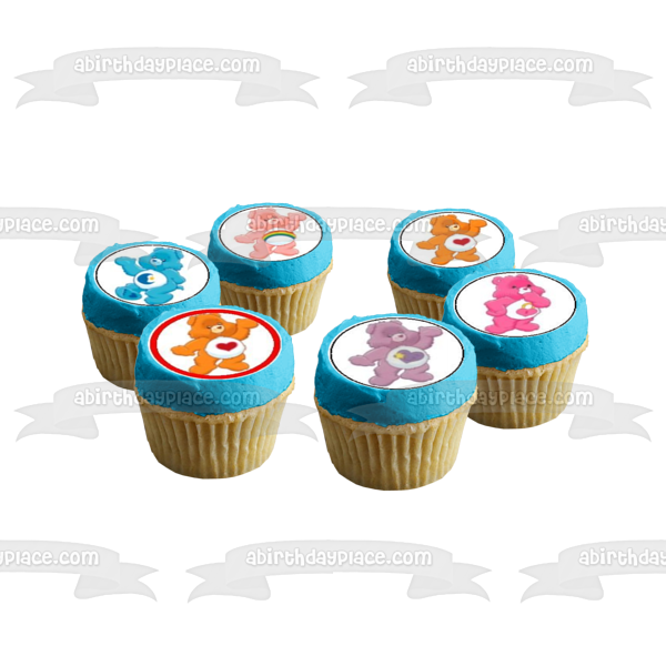 Decorate your Cupcakes with these 24 Count Care Bears themed Edible Cake Topper Image featuring Funshine Bear, Tenderheart Bear, Cheer Bear, Bedtime Bear and Secret Bear!