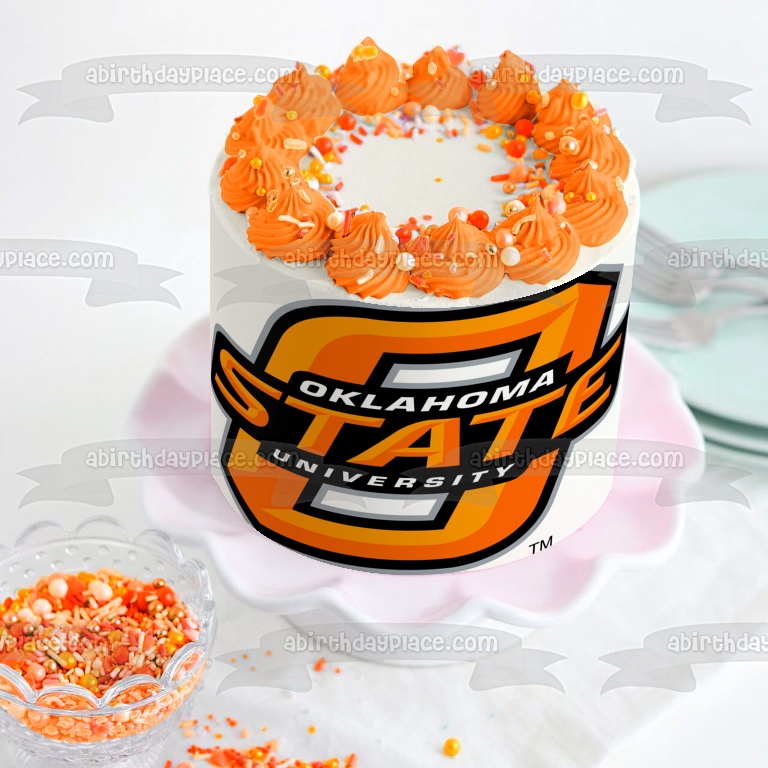 Decorate your Cake with this Oklahoma State University themed Edible Cake Topper Image featuring the Cowboys Logo!