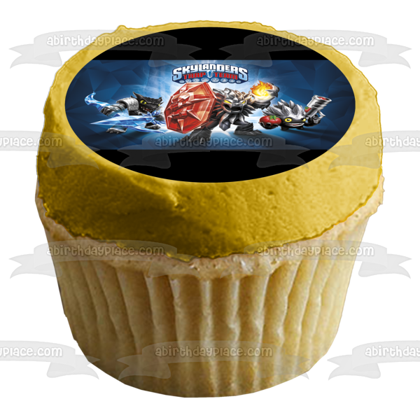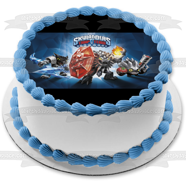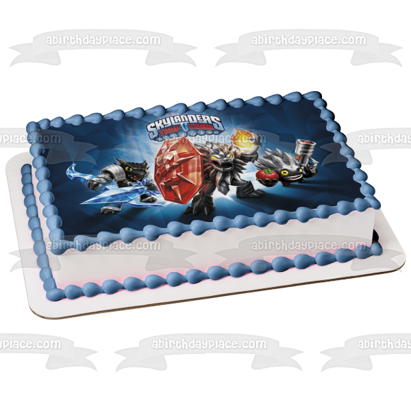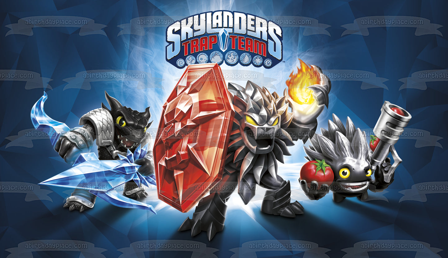 Decorate your Cake with this Skylanders Trap Team Dark Edition themed Edible Cake Topper Image featuring Dark Food Fight, Dark Snap Shot and Dark Wildfire!