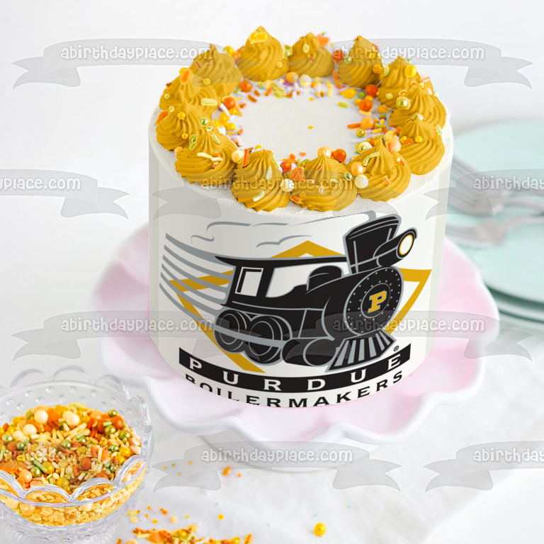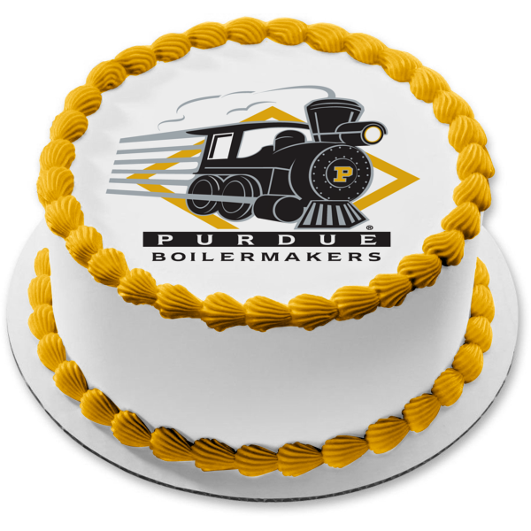 Decorate your Cake with this Purdue Boiler Makers Logo themed Edible Cake Topper Image