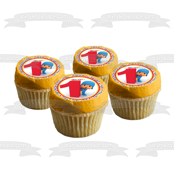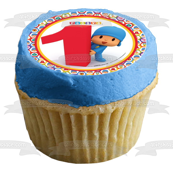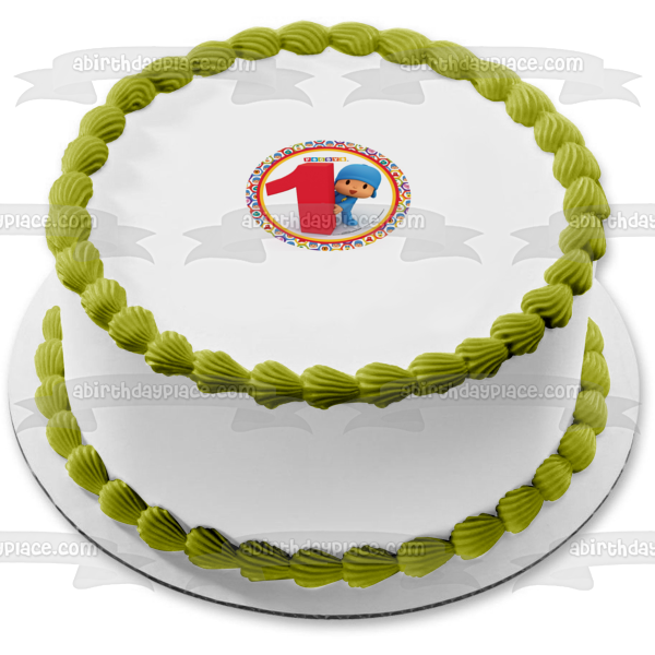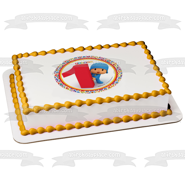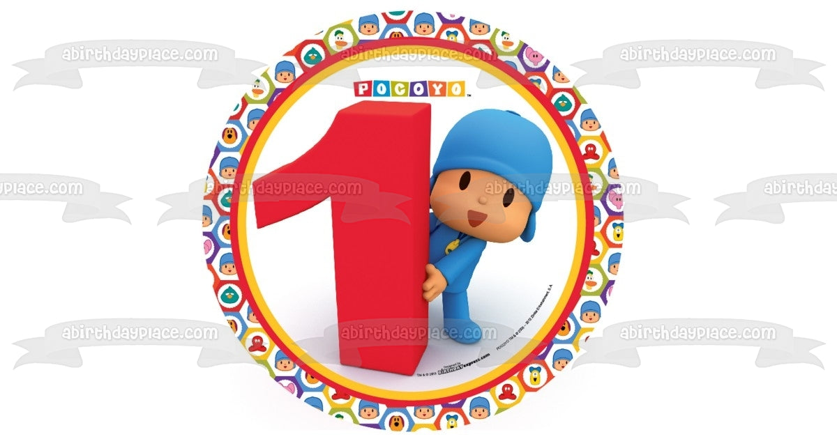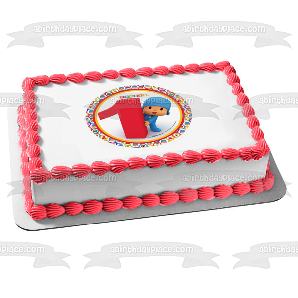 Decorate your Cake with this Pocoyo themed Edible Cake Topper Image featuring Happy 1st Birthday!