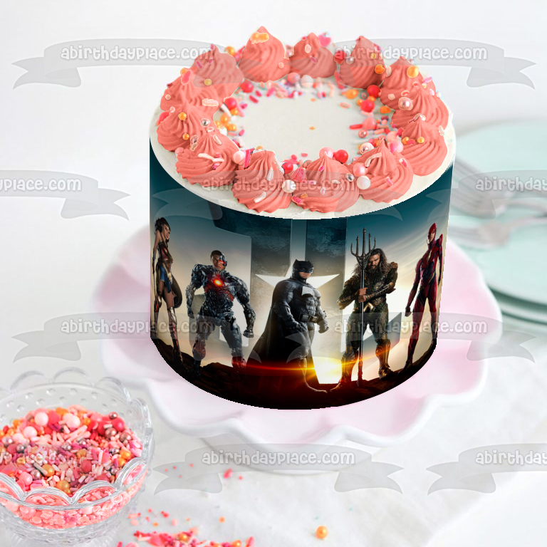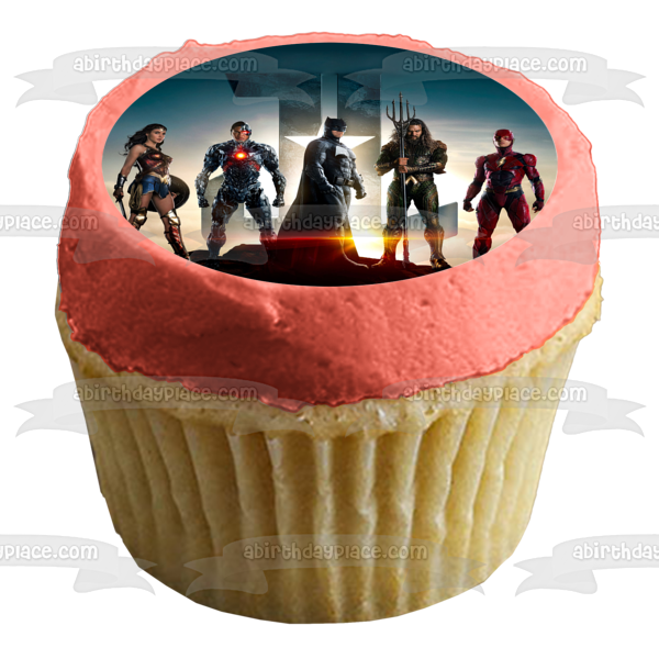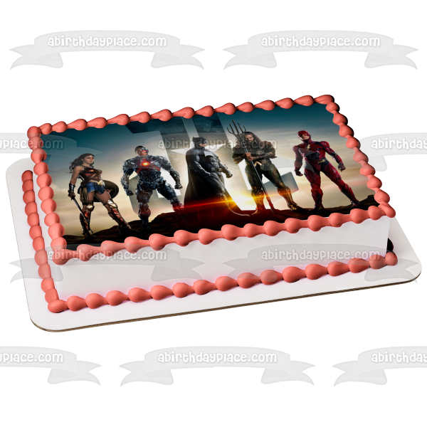 Decorate your Cake with this Justice League themed Edible Cake Topper Image featuring Batman and Wonder Woman!