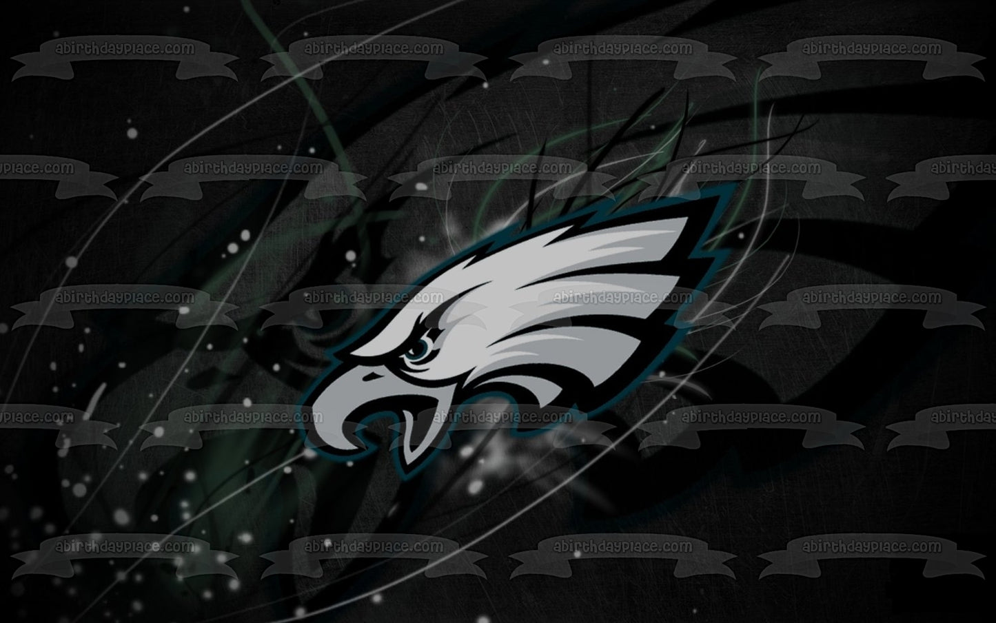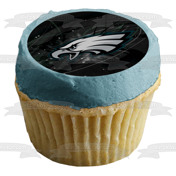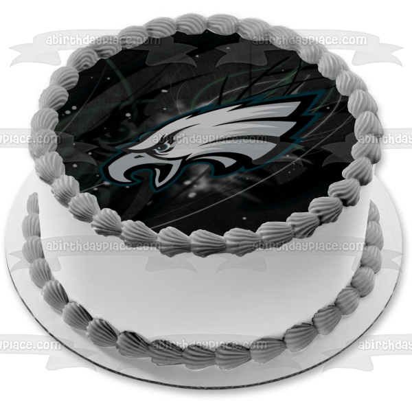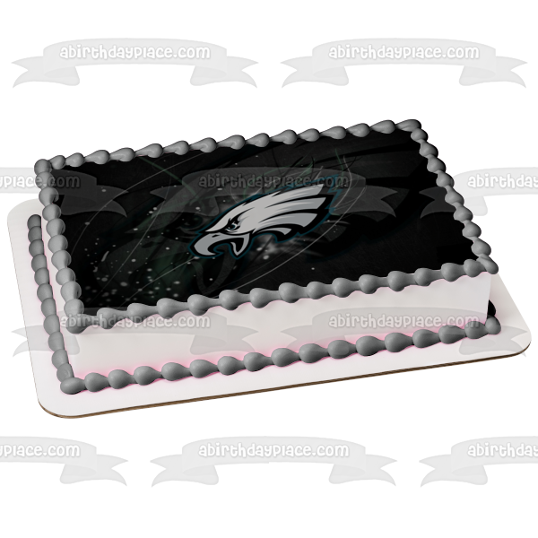 Decorate your Cake with this NFL themed Edible Cake Topper Image featuring the Philadelphia Eagles Logo on a Black Background!