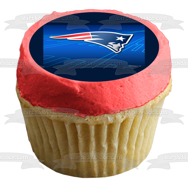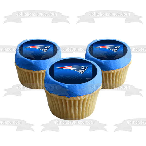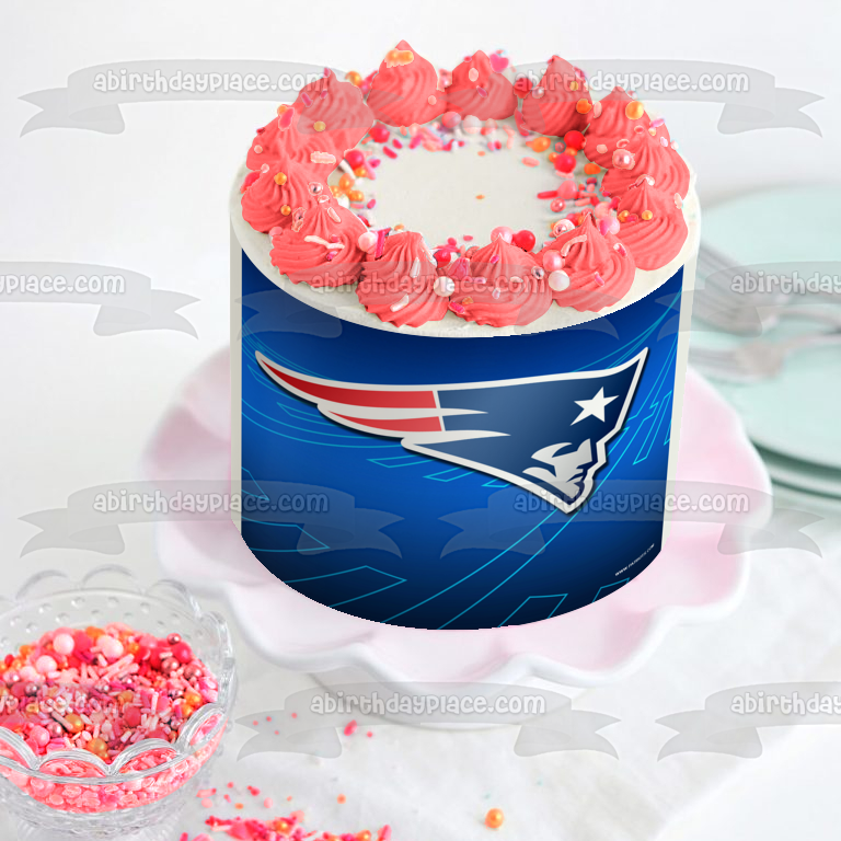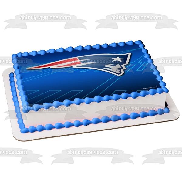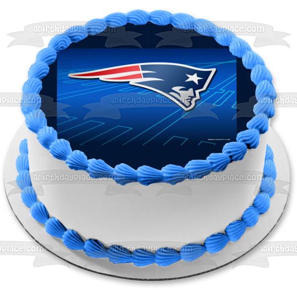 Decorate your Cake with this NFL themed Edible Cake Topper Image featuring the New England Patriots Logo with a Blue Background!