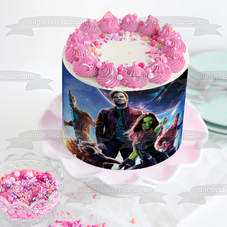 Guardians of Galaxy Gamora Star-Lord Nebula Edible Cake Topper Image ABPID08995