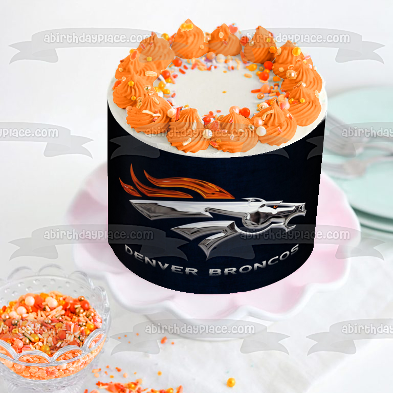 Decorate your Cake with this Sports themed Edible Cake Topper Image featuring the Steel Logo of the Denver Broncos, a professional American football club based in Denver, Colorado!