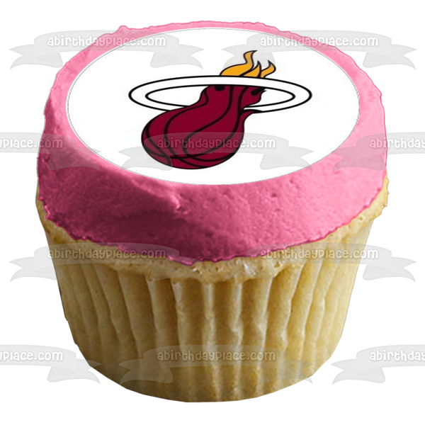 Decorate your Cupcakes with these Sports themed Edible Cupcake Topper Images featuring the Logo of the Miami Heat, an American professional basketball team based in Miami, Florida!
