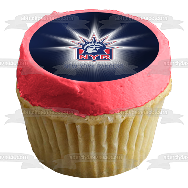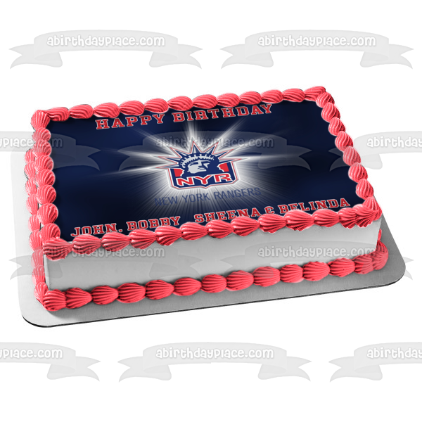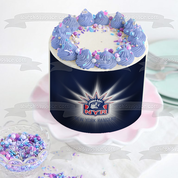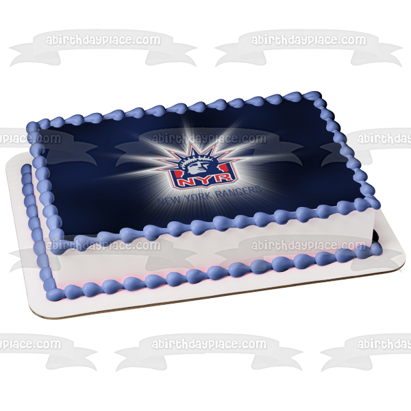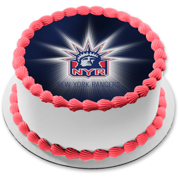 Decorate your Cake with this Sports themed Edible Cake Topper Image featuring the Logo of the New York Rangers, a Professional Ice Hockey Team based in New York City!