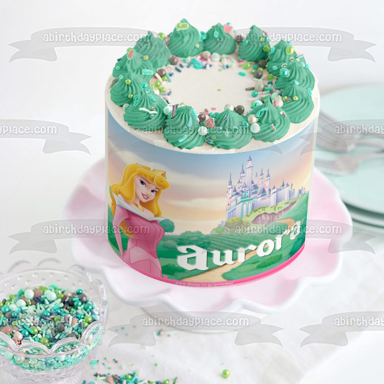 Decorate your Cake with this Disney Princess themed Edible Cake Topper Image featuring Aurora from Sleeping Beauty wearing a Pink Dress!
