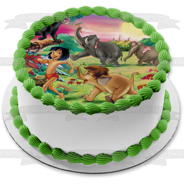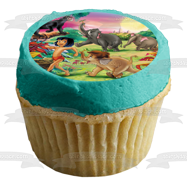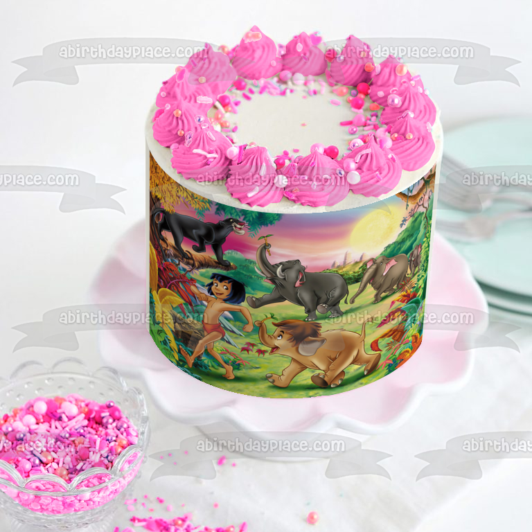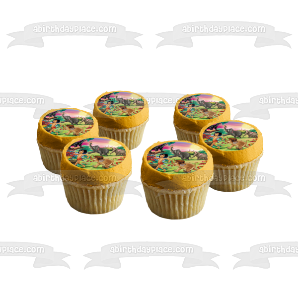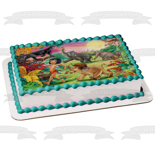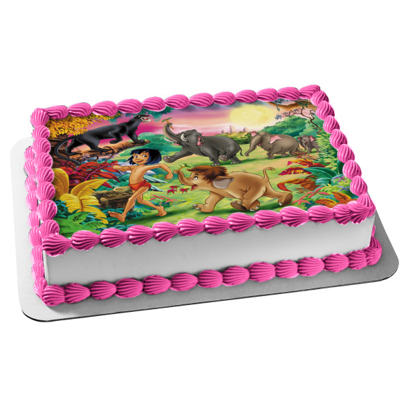 Decorate your Cake with this Disney themed Edible Cake Topper Image featuring Mowgli, Baloo, Kaa, Sheer Khan, Bagheera,Winifred, Colonel Hathi and Hathi Jr. from The Jungle Book!