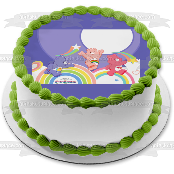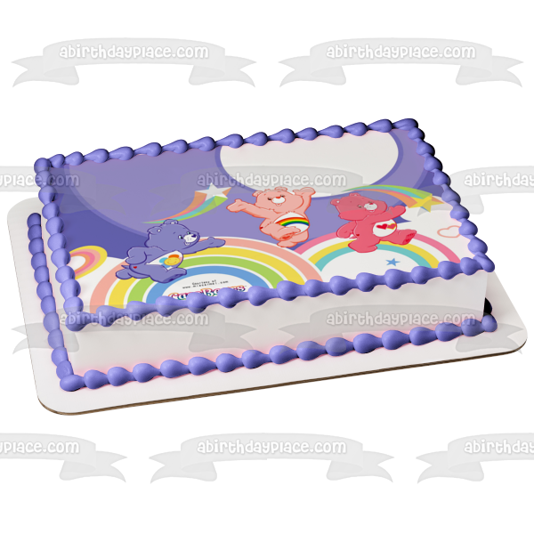 Decorate your Cake with this CareBears themed Edible Cake Topper Image featuring Cheer Bear, Harmony Bear and Love-a-Lot Bear!