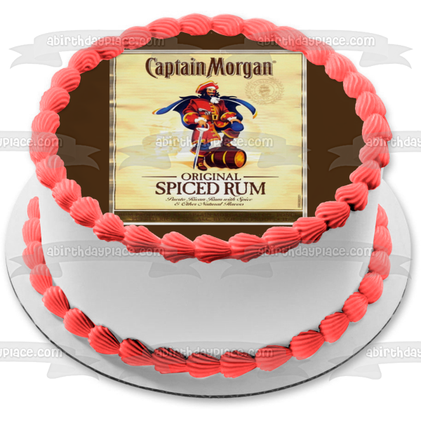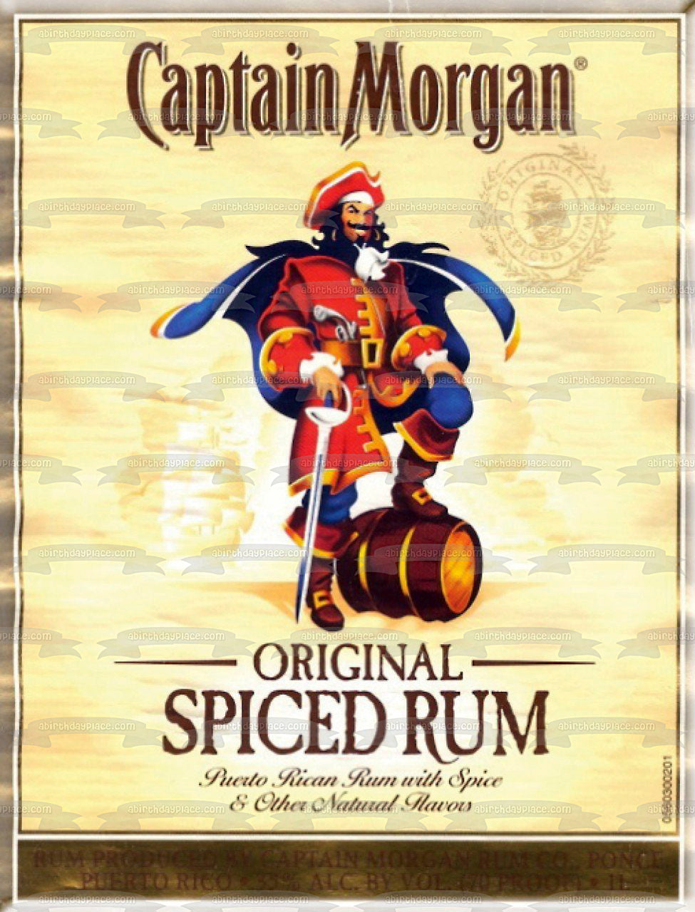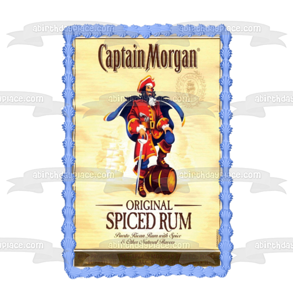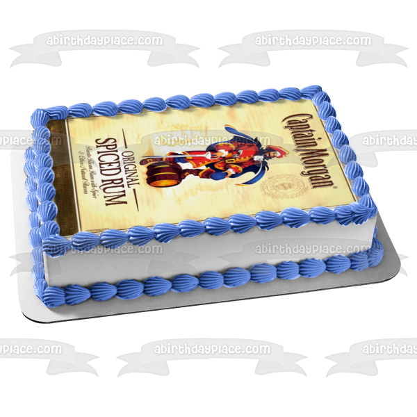Decorate your Cake with this Adult Beverage themed Edible Cake Topper Image featuring the Label from a bottle of Captain Morgan Original Spiced Rum, a Puerto Rican Rum with Spice and Other Natural Flavors!