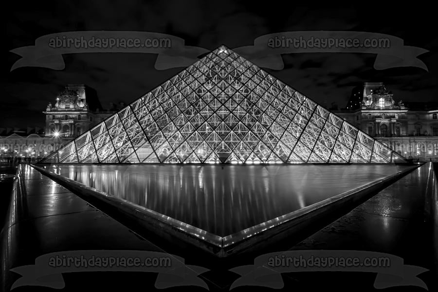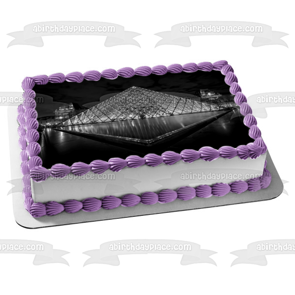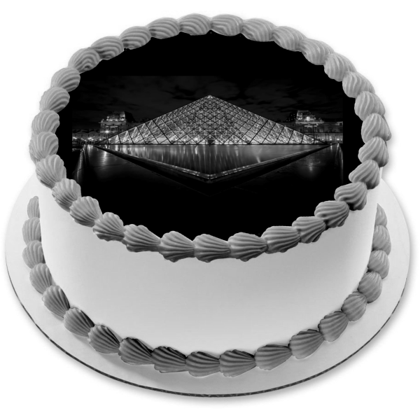 Decorate your Cake with this The Louvre Museum themed Edible Cake Topper Image featuring in Black and White!