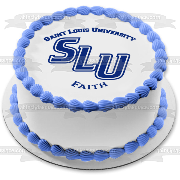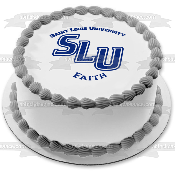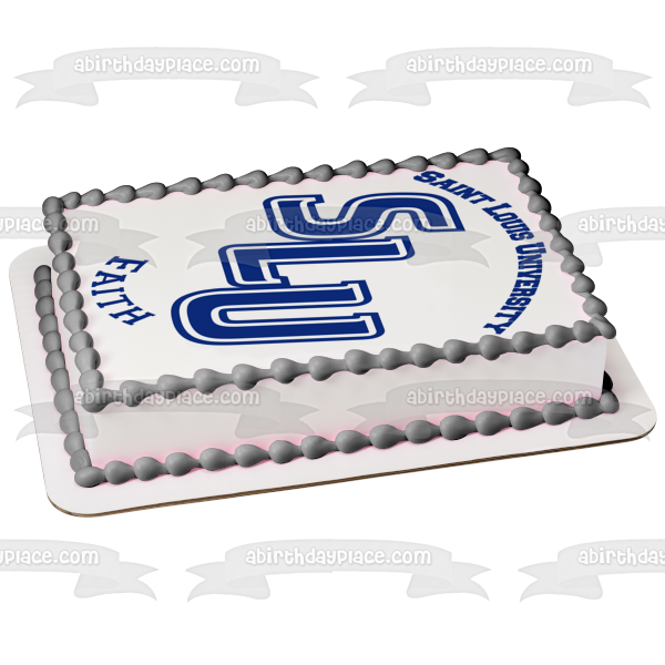 Decorate your Cake with this Saint Louis University themed Edible Cake Topper Image featuring the Faith Logo!