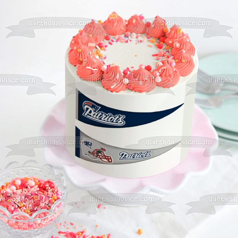 Decorate your Cake with this NFL themed Edible Cake Topper Image featuring the New England Patriots Logo's on Pennats!