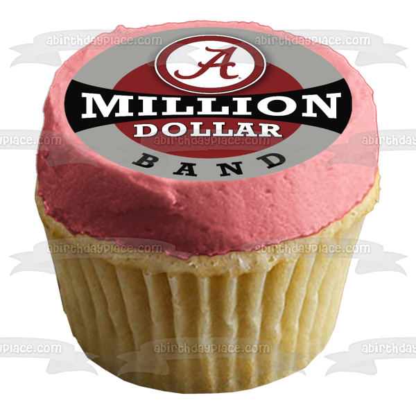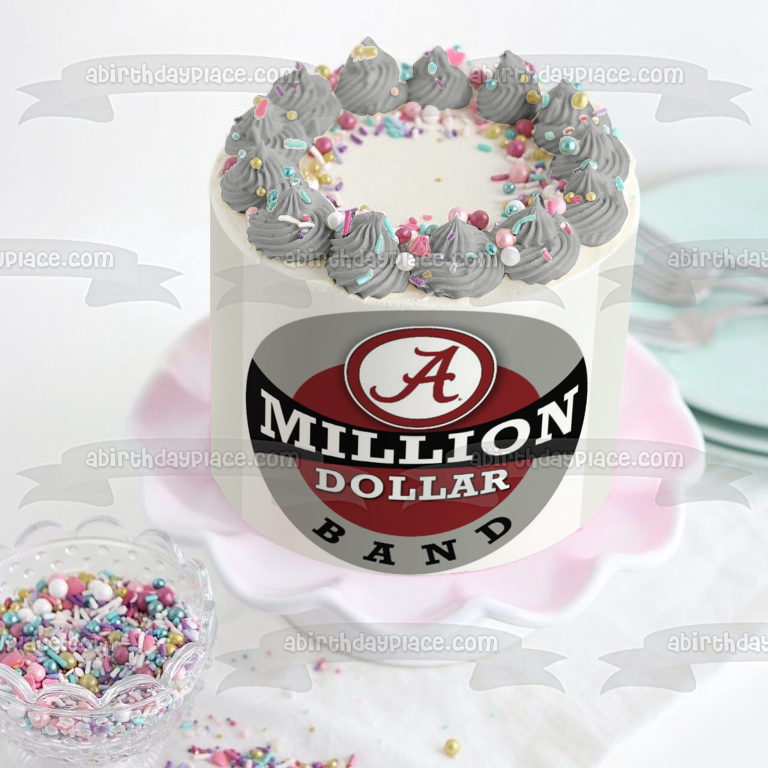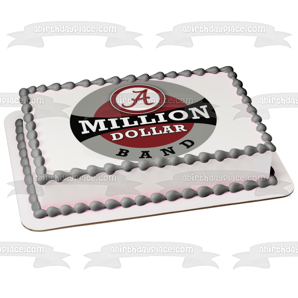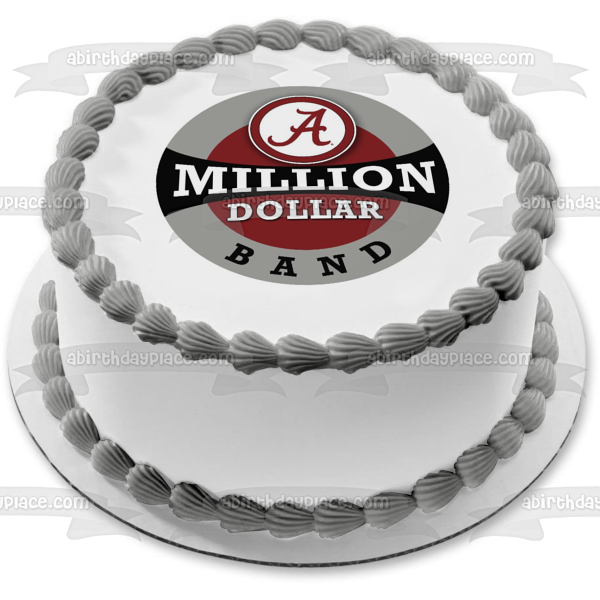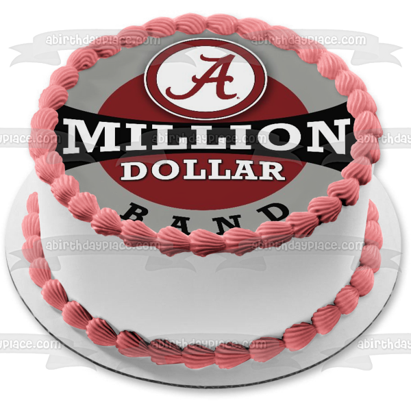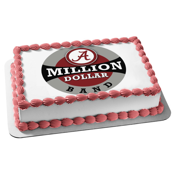 Decorate your Cake with this Alabama Crimson Tide themed Edible Cake Topper Image featuring the Football Logo with the words Million Dollar Band!