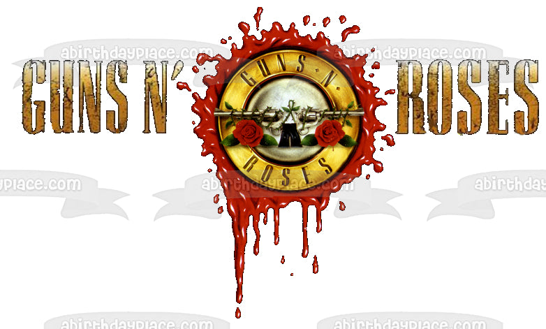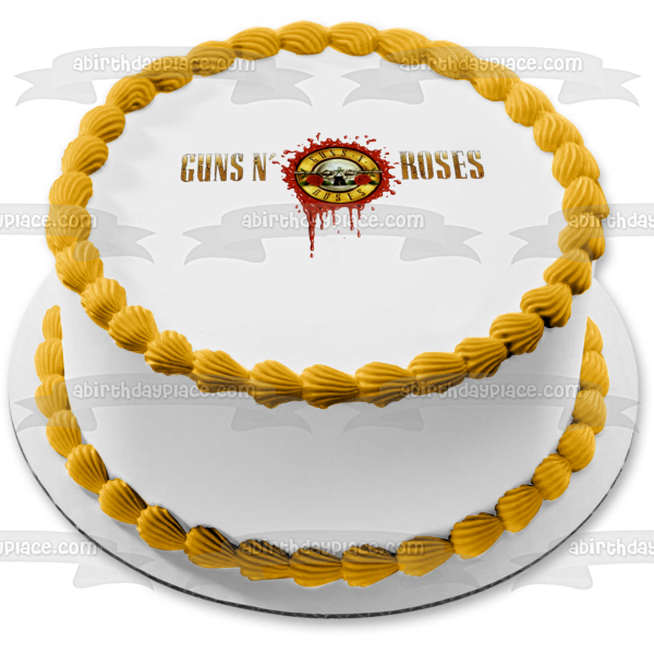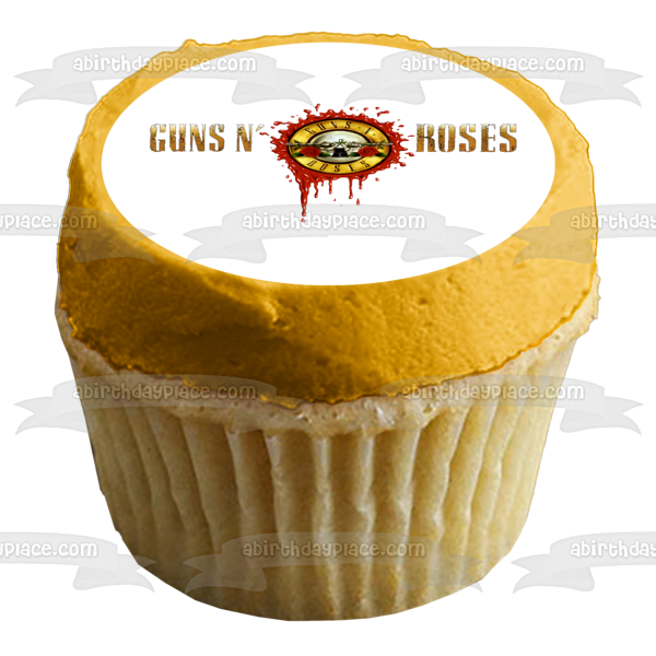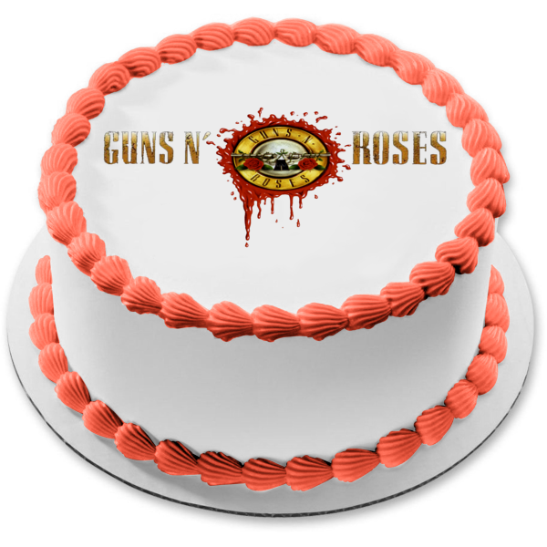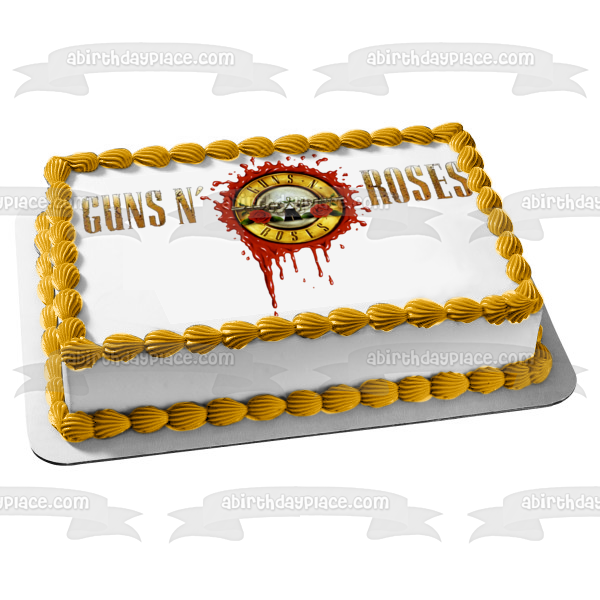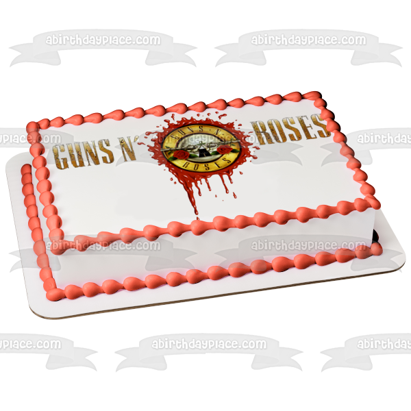 Decorate your Cake with this Guns N' Roses themed Edible Cake Topper Image featuring the Logo with Guns and Roses!