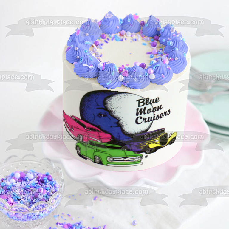 Blue Moon Cruisers Antique Cars Blue Moon Pink Green Purple Cars Edible Cake Topper Image ABPID11253