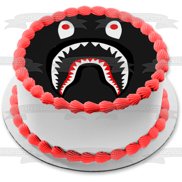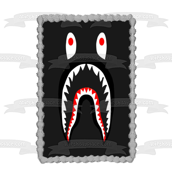 Decorate your Cake with this Bape Shark themed Edible Cake Topper Image featuring their Logo of Hoodies with a Black Background!