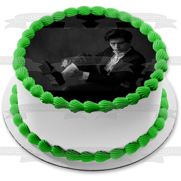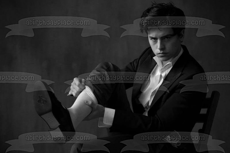 Decorate your Cake with this Riverdale themed Edible Cake Topper Image featuring Cole Sprouse in a Black and White Photo!
