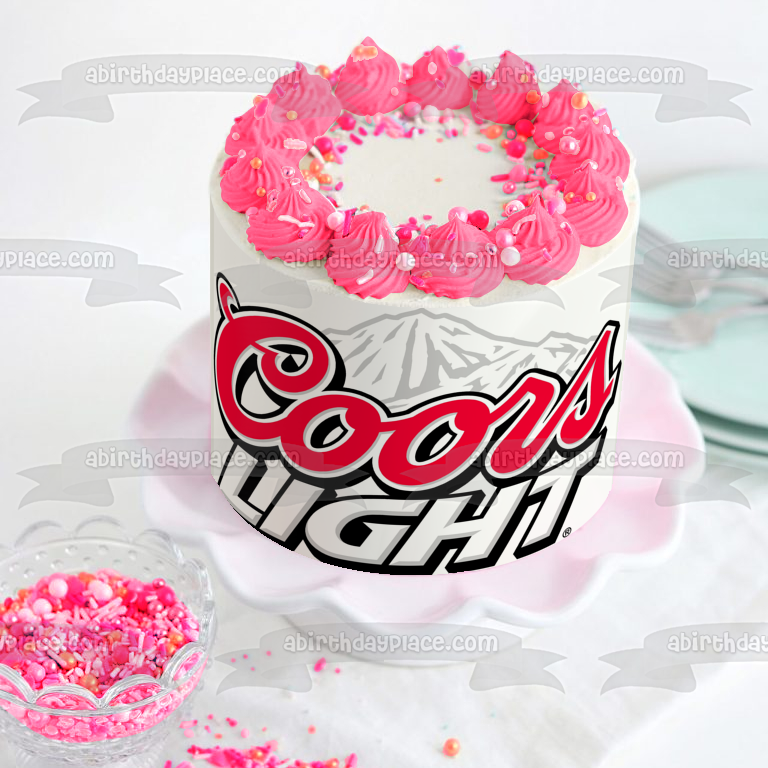 Decorate your Cake with this Coors Light themed Edible Cake Topper Image featuring the Logo and a White Mountain in the Background!