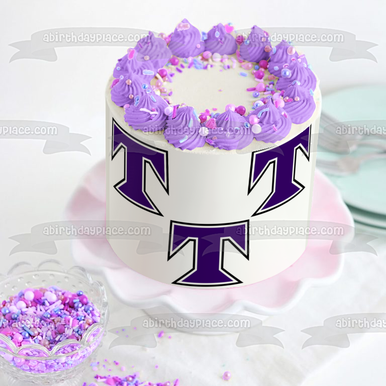 Trinity Christian School Lions Purple T Logos Edible Cake Topper Image ABPID11419