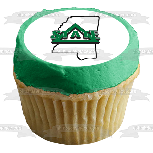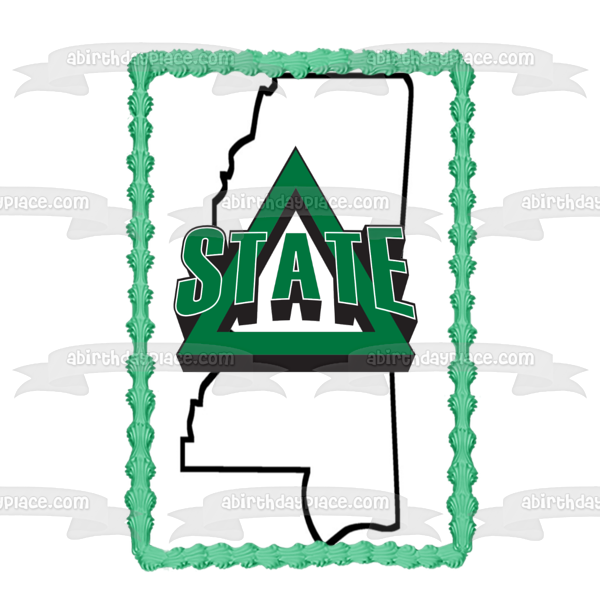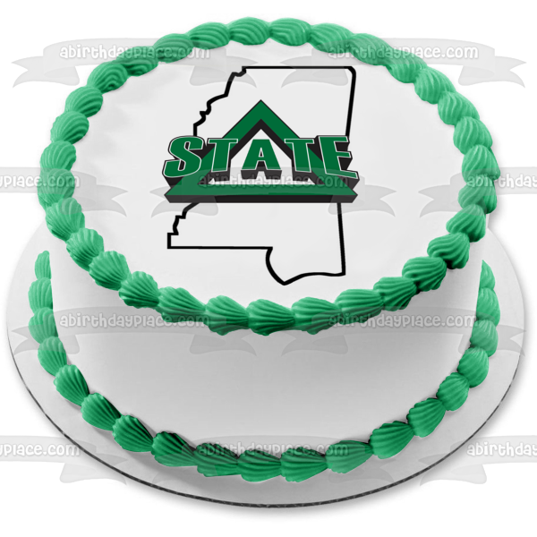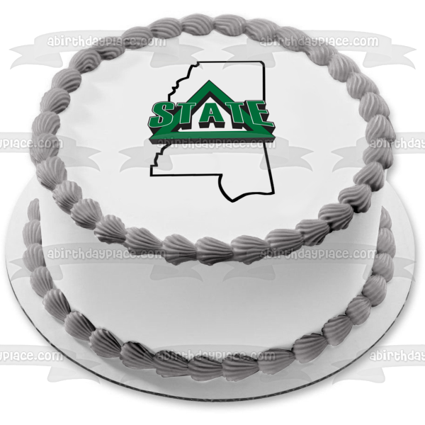 Decorate your Cake with this Delta State University themed Edible Cake Topper Image featuring their Logo and a Mississippi State Outline!