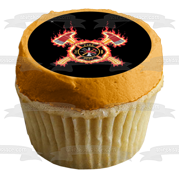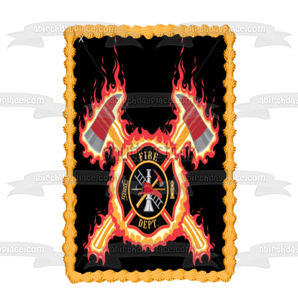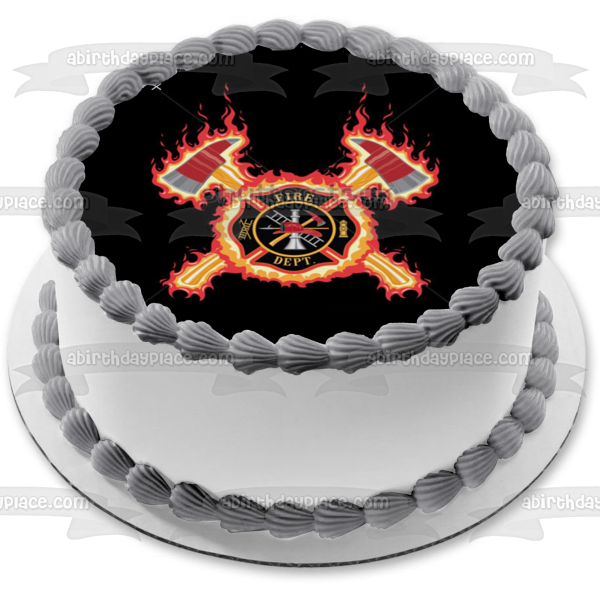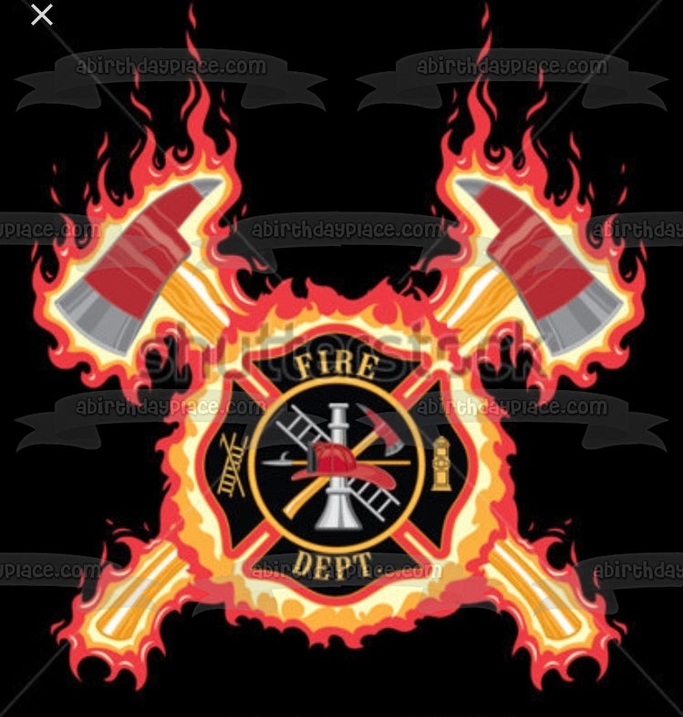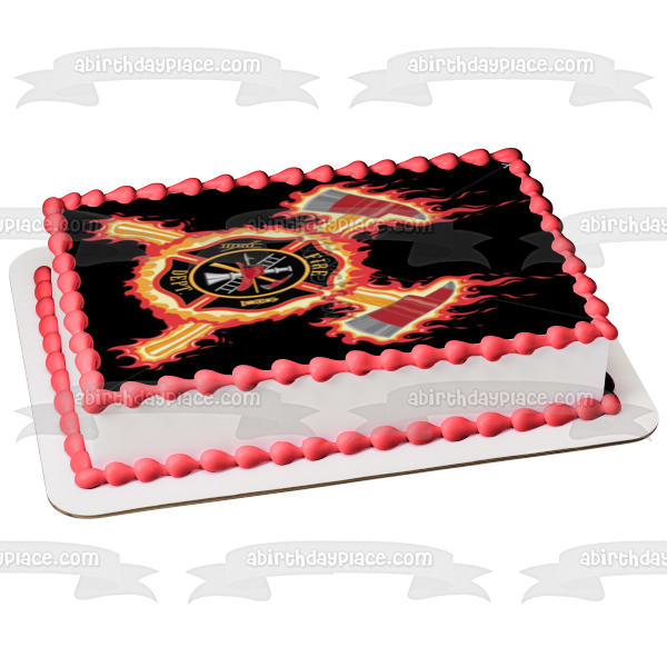 Decorate your Cake with this Fire Department themed Edible Cake Topper Image featuring the Maltese Cross Flames Logo!