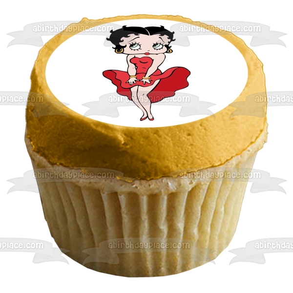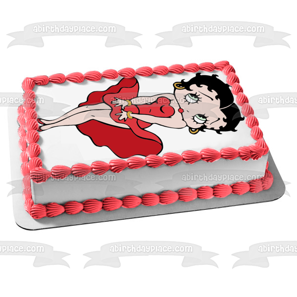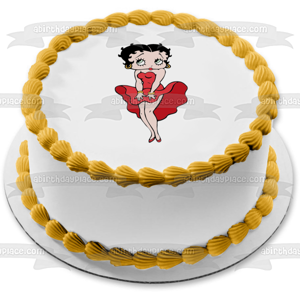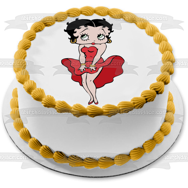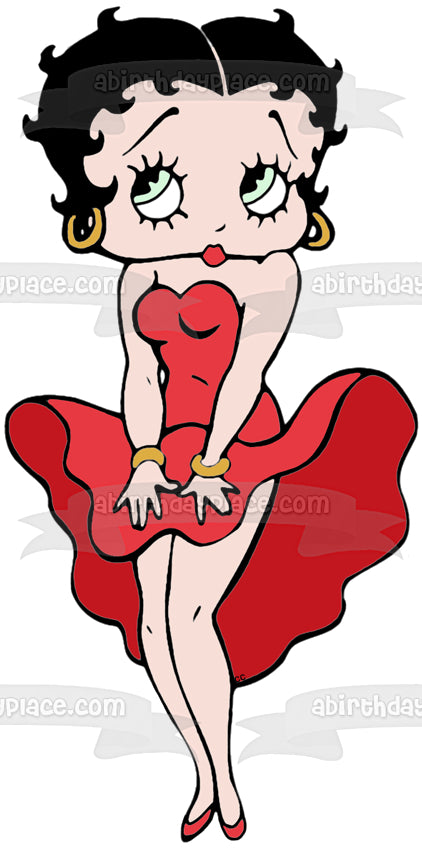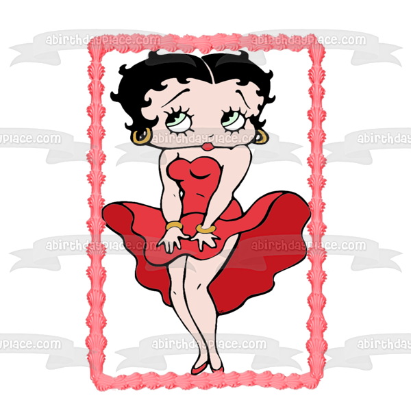 Decorate your Cake with this Betty Boop themed Edible Cake Topper Image featuring Her holding Her Dress Down!