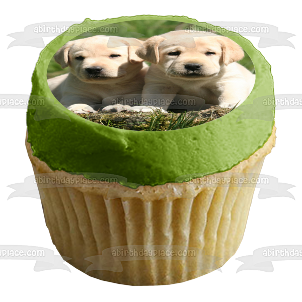 Decorate your Cake with this Puppies themed Edible Cake Topper Image featuring Labrador Retreivers!