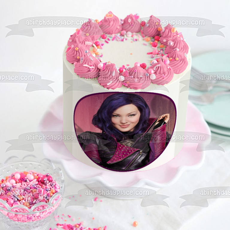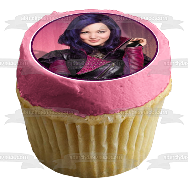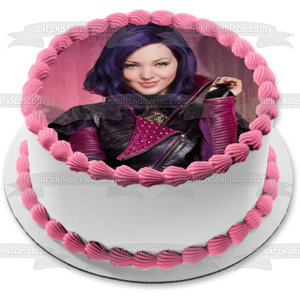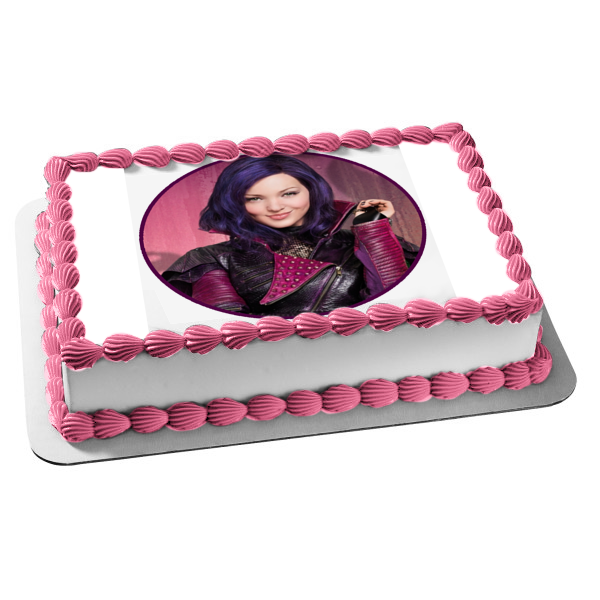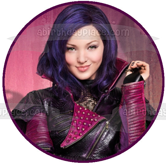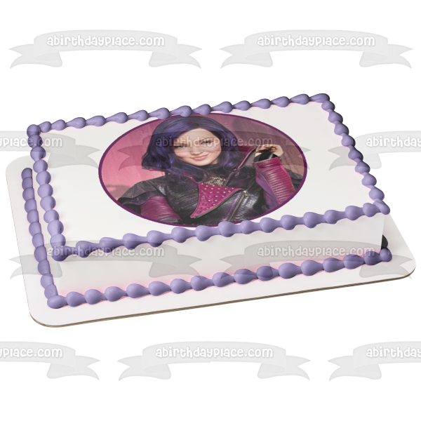 Decorate your Cake with this Descendants themed Edible Cake Topper Image featuring Mal with a Purple Background!