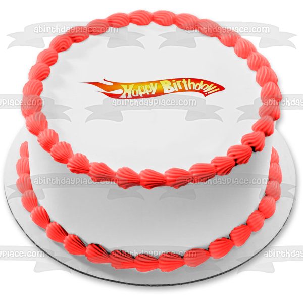 Decorate your Cake with this Hot Wheels themed Edible Cake Topper Image featuring a Happy Birthday Banner!