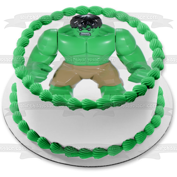 Decorate your Cake with this LEGO Superhero themed Edible Cake Topper Image featuring The Hulk!