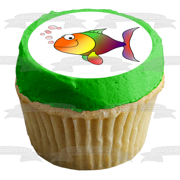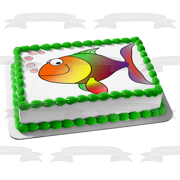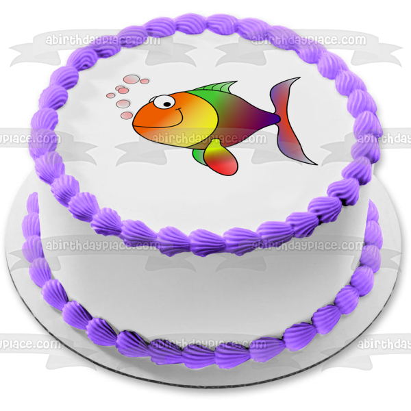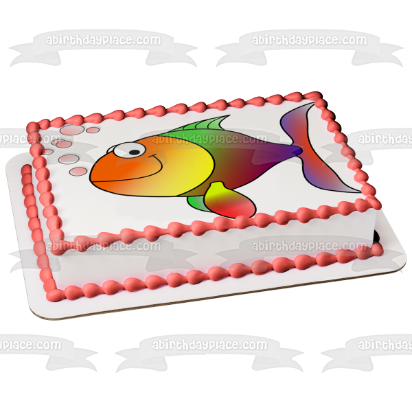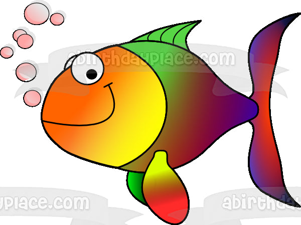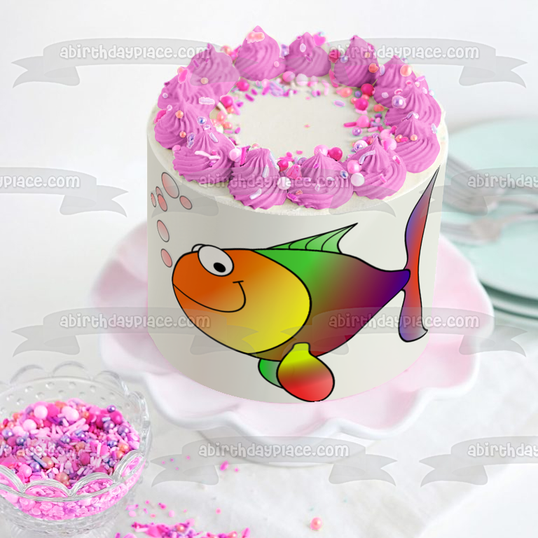 Decorate your Cake with this Cartoon Tropical Tye Dye Fish themed Edible Cake Topper Image