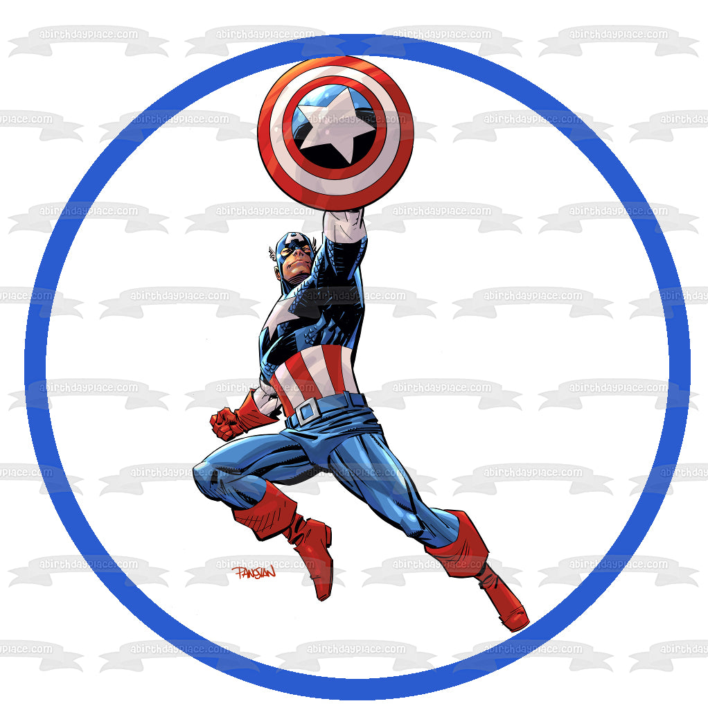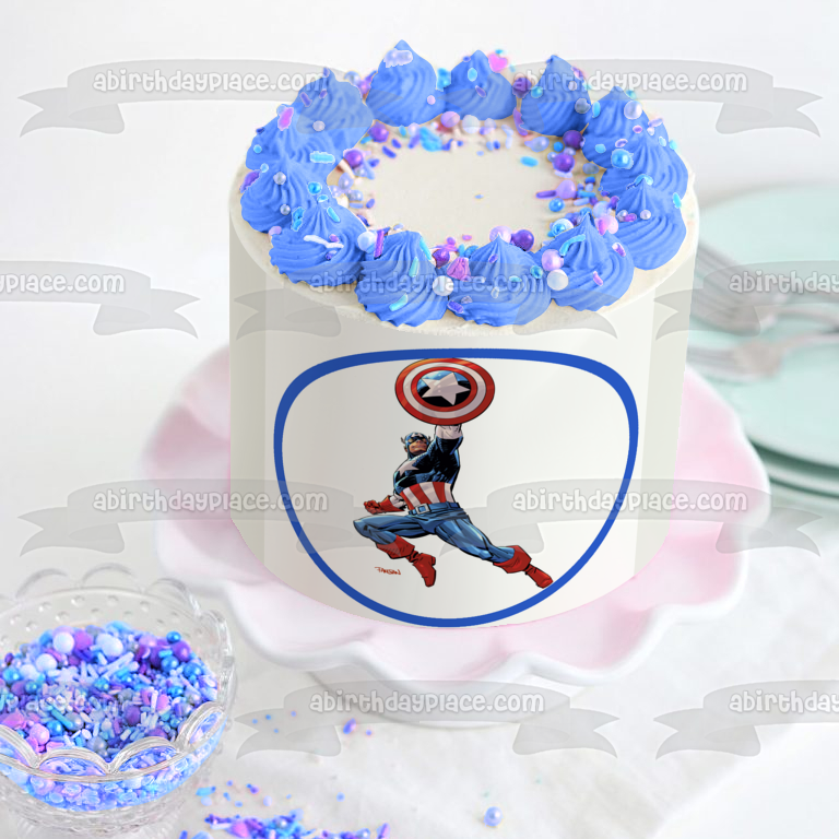 Marvel Avengers Comic Book Captain America Sheild Edible Cake Topper Image ABPID12763