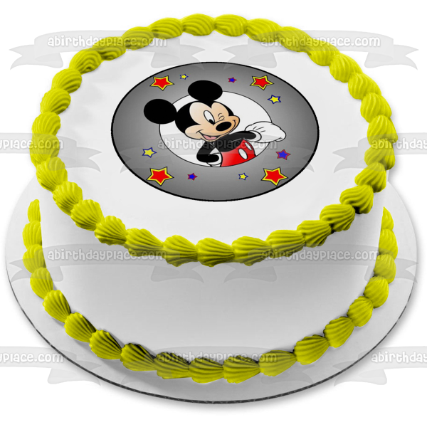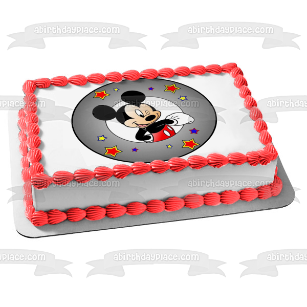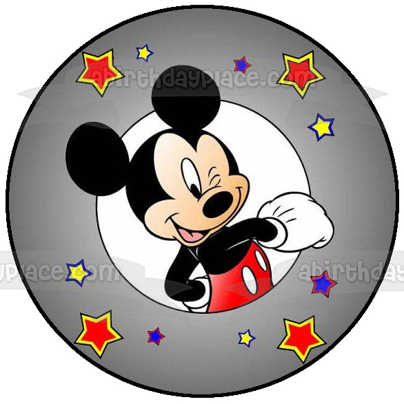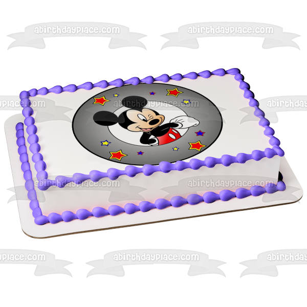 Decorate your Cake with this Disney Mickey Mouse and Friends themed Edible Cake Topper Image featuring Mickey Mouse Surrounded by Stars!