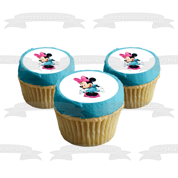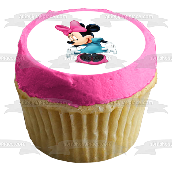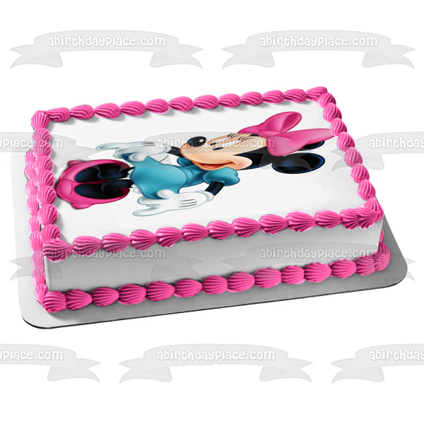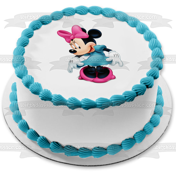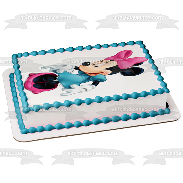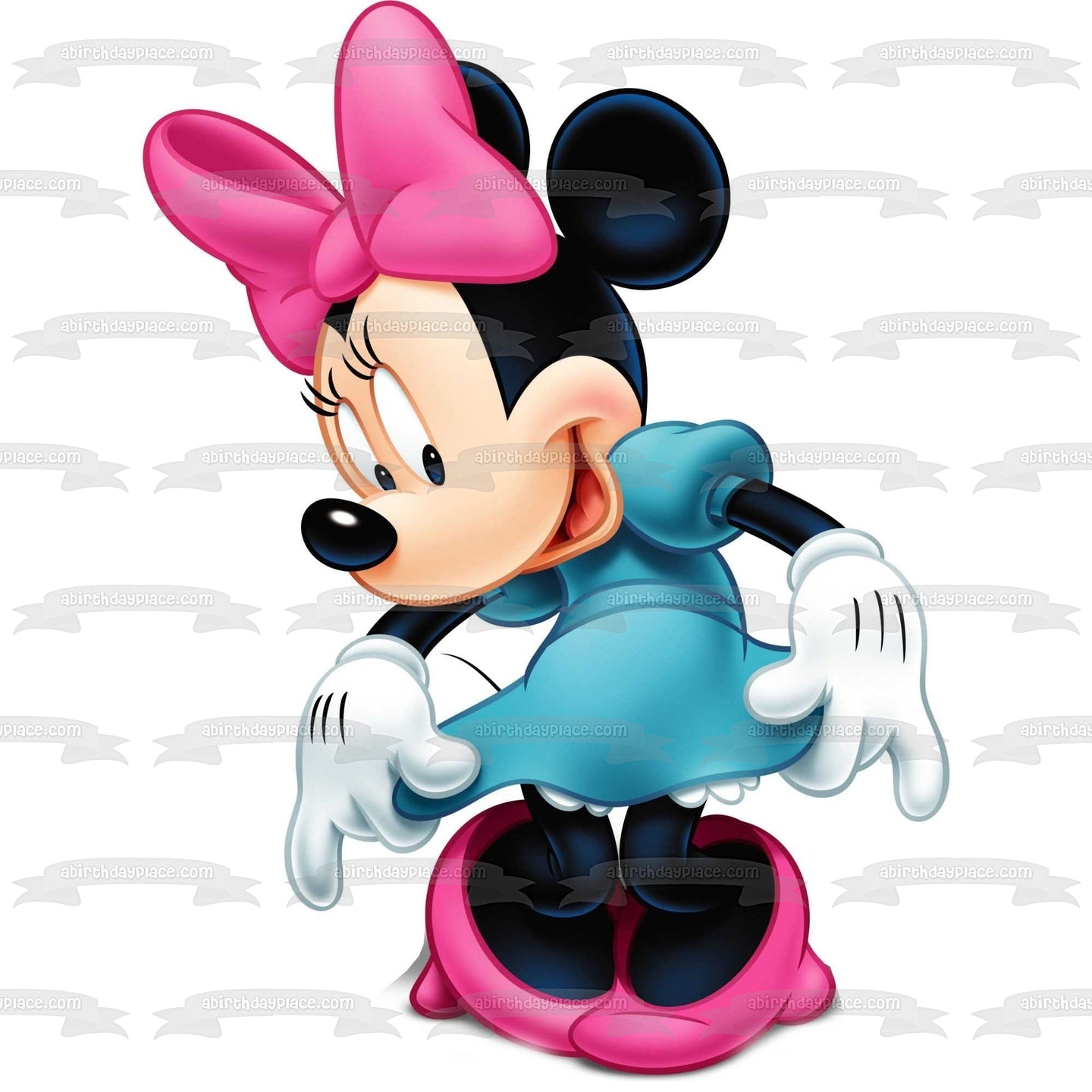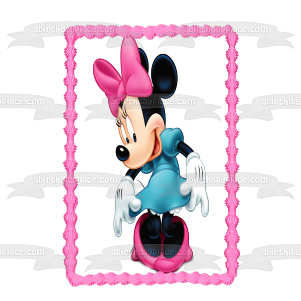 Decorate your Cake with this Walt Disney themed Edible Cake Topper Image featuring Minnie Mouse wearing a Blue Dress!
